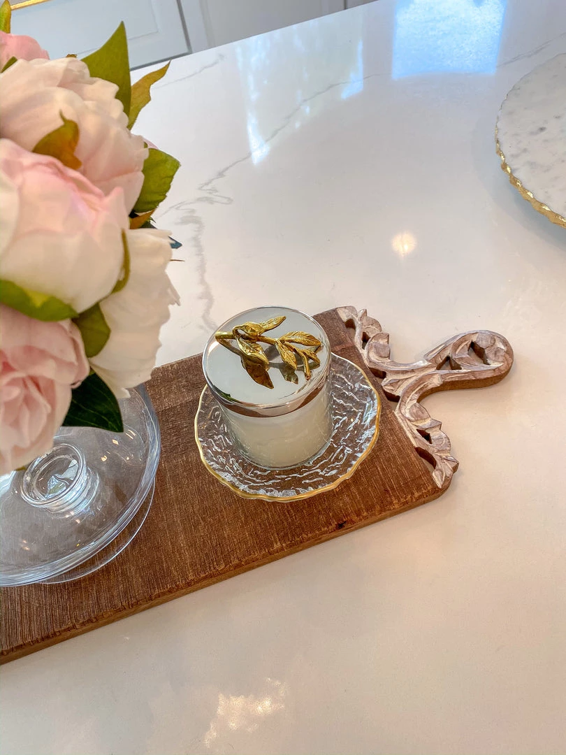 Description: These mango wood boards will add a beautiful touch to your serving display! The dark mango wood offers a modern twist to a rustic style, and when paired with intricate scroll handle, these boards become simply elegant. Available in a circle or rectangular shape!