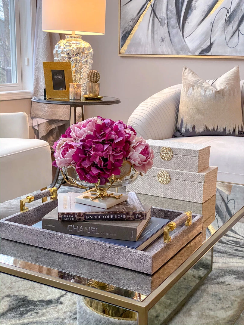 This box set is beautifully patterned with a soft fabric overlay. The gold medallion on the front ties these back to all of your gold decor. Can be styled together, or separately, and they are great for storing things like remotes and other items.