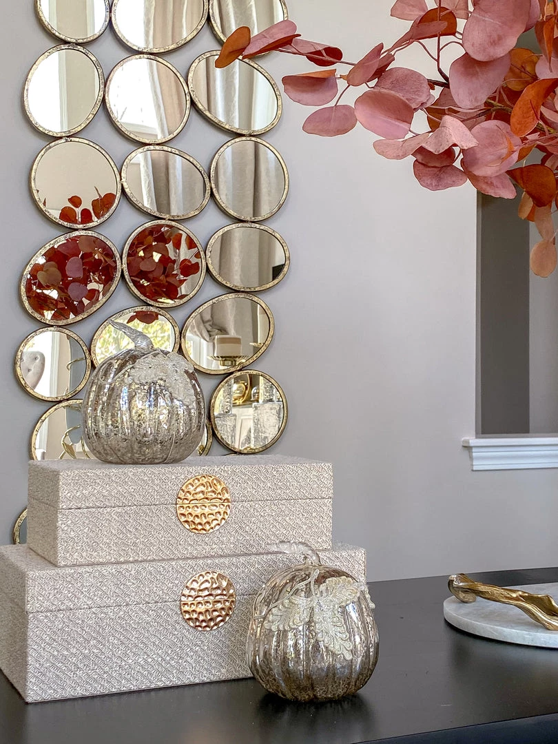 Description: This mercury glass pumpkin features details to make your fall decor glamourous!
