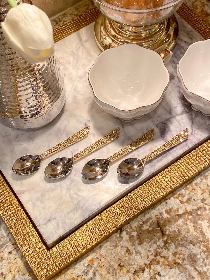 Matching back to the mosaic collection, this tea spoon has the same metal texture and pattern! Who doesn’t love a pretty spoon!