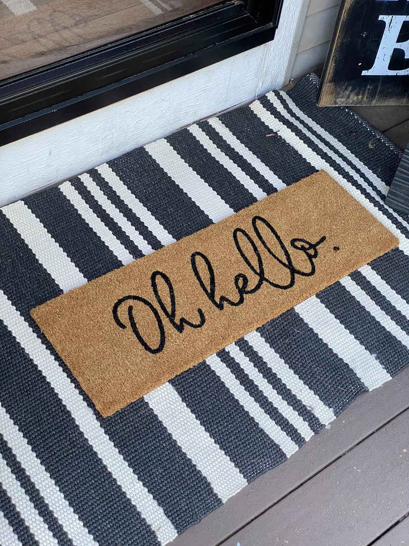 Description: Wow your guests from the moment the come to your home! This beautiful welcome mat offers a delightful welcome, and is long and narrow shape to fit in any doorway with ease!