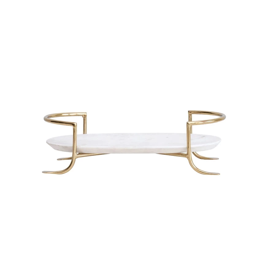 The marble tray is perfect for serving breakfast in bed. The gold handles add a luxurious touch.