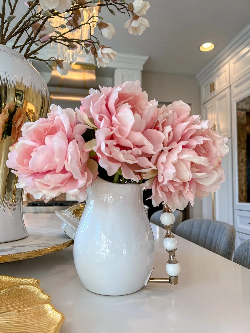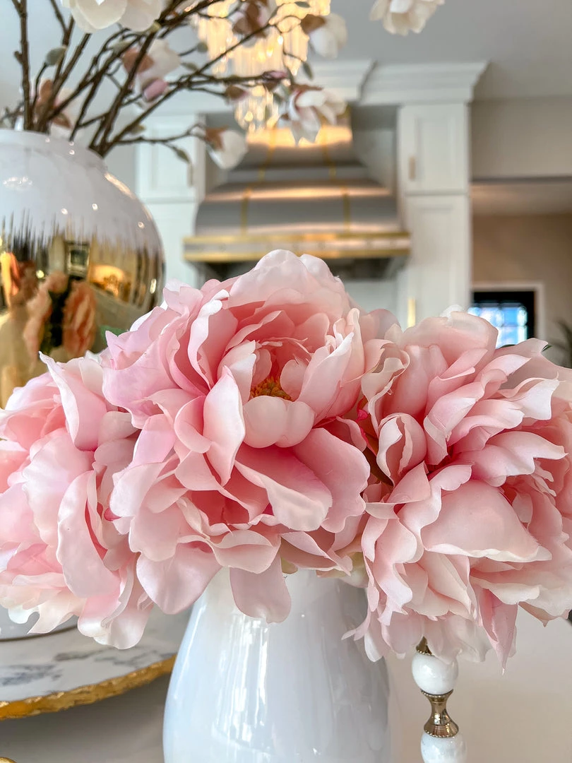 Description: This lovely full peony stem is a beautiful shade of pink, bundle these on their own or with a few other faux florals for a full vibrant look.