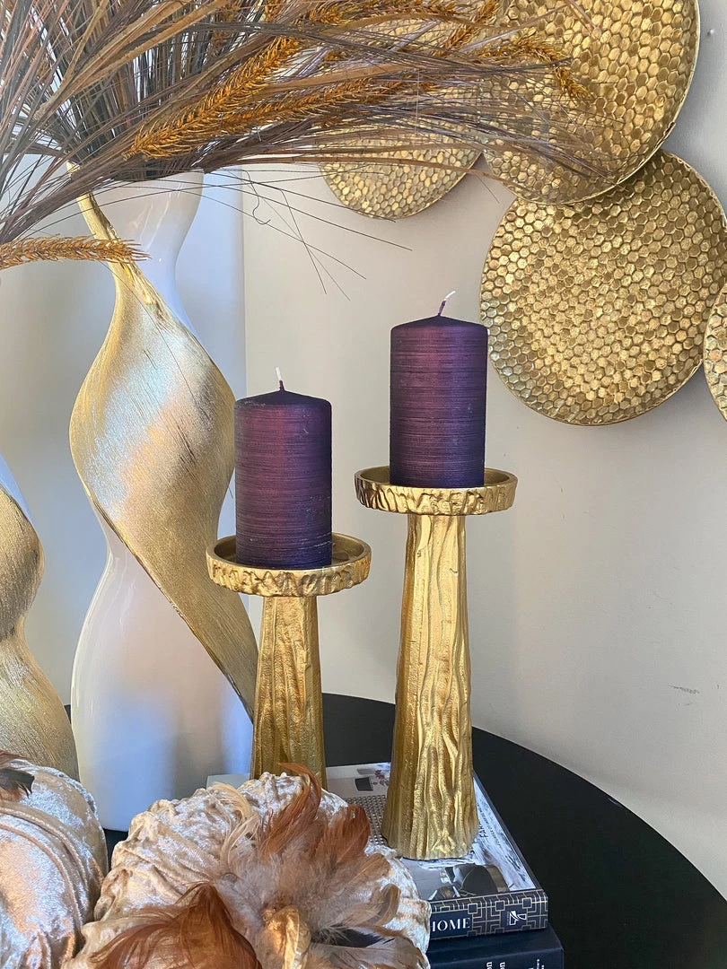 Description: This stunning glossy deep purple candle is perfect for any season! It offers a beautiful textured finish to match with any decor.