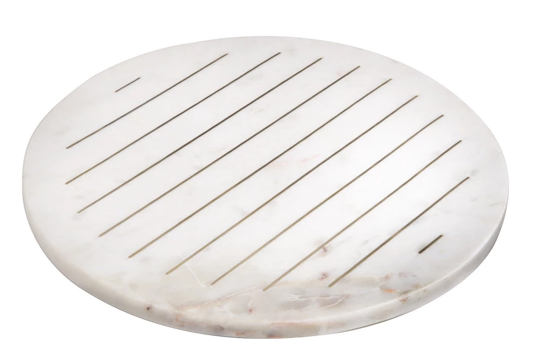 Description: This round marble tray features gold metal inlay lines, this is great for styling in your kitchen or dining room!
