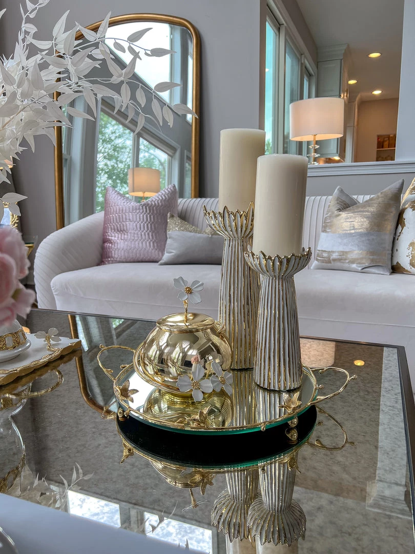I’m in love with this mirrored tray! It’s the perfect size for my entryway table, and the gold flower design is so elegant. It’s a great way to add a touch of glamour to any space.