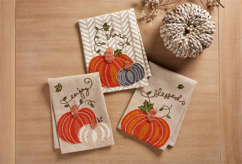 Description: This stunning pumpkin dishcloth is perfect for fall! Complete with traditional fall patterns, this will bring the warmth of the season into your home! Available in 3 styles.
