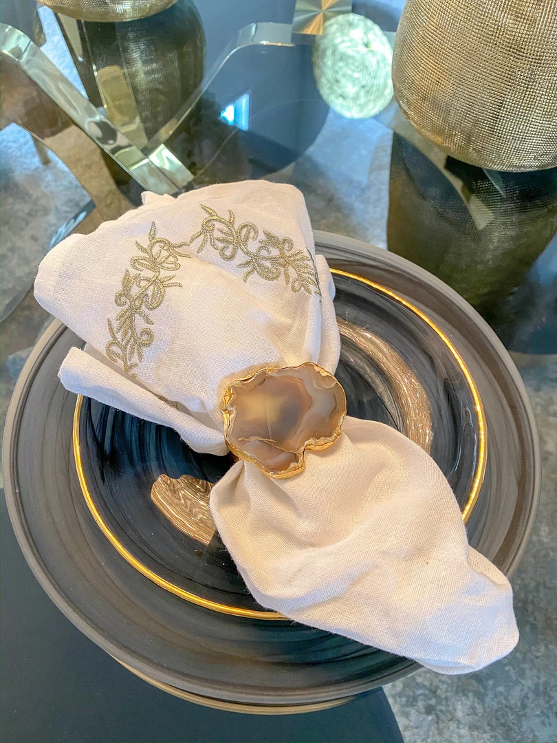 Set of 4 agate napkin holders. Classic and beautiful to celebrate all occasions!
