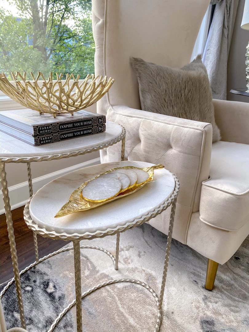 Description: Real quartz coasters with beautiful distressed gold detail for an elegant touch to any surface in your home!