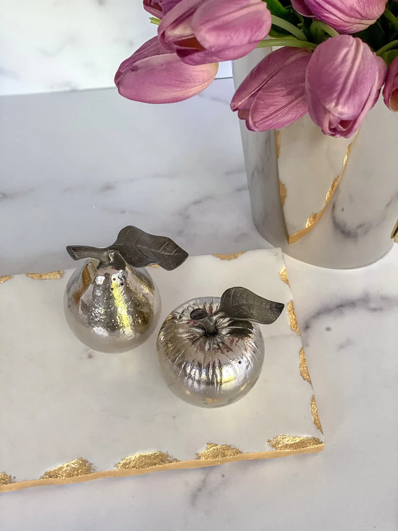 You’ll love displaying these elegant, fruit shaped salt and pepper shakers on your table!