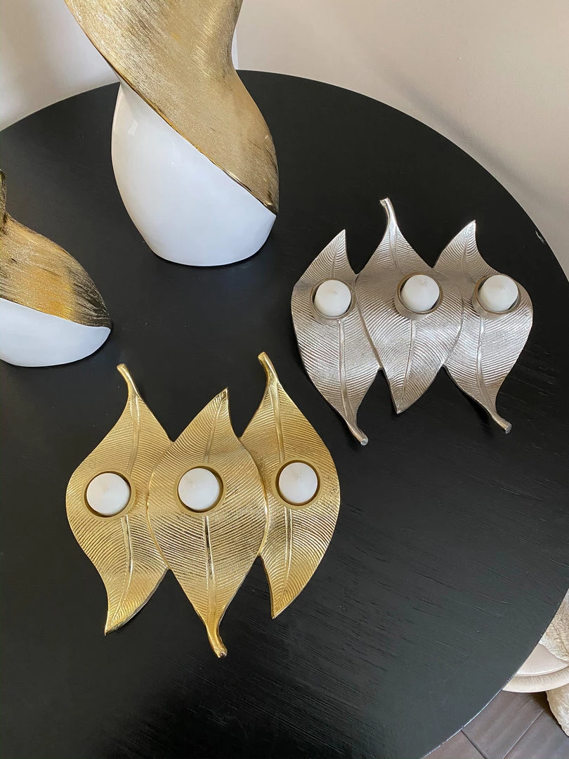 Inspire Me! Home Decor Silver Triple Leaf Tea Light Holder