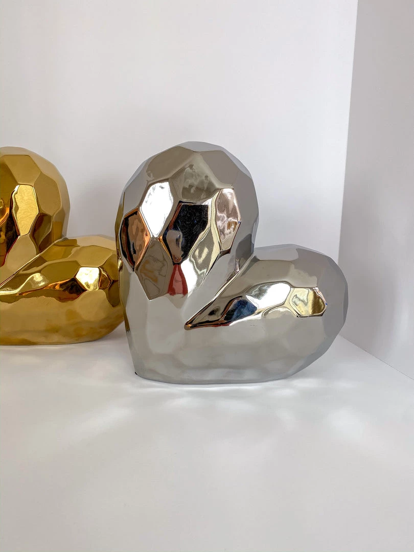 Description: We *heart* this adorable ceramic heart decorative accent! Available in silver and gold, this design features on oversized heart with a textured surface to catch the light and the eyes of your guests. An adorable must have for any home!