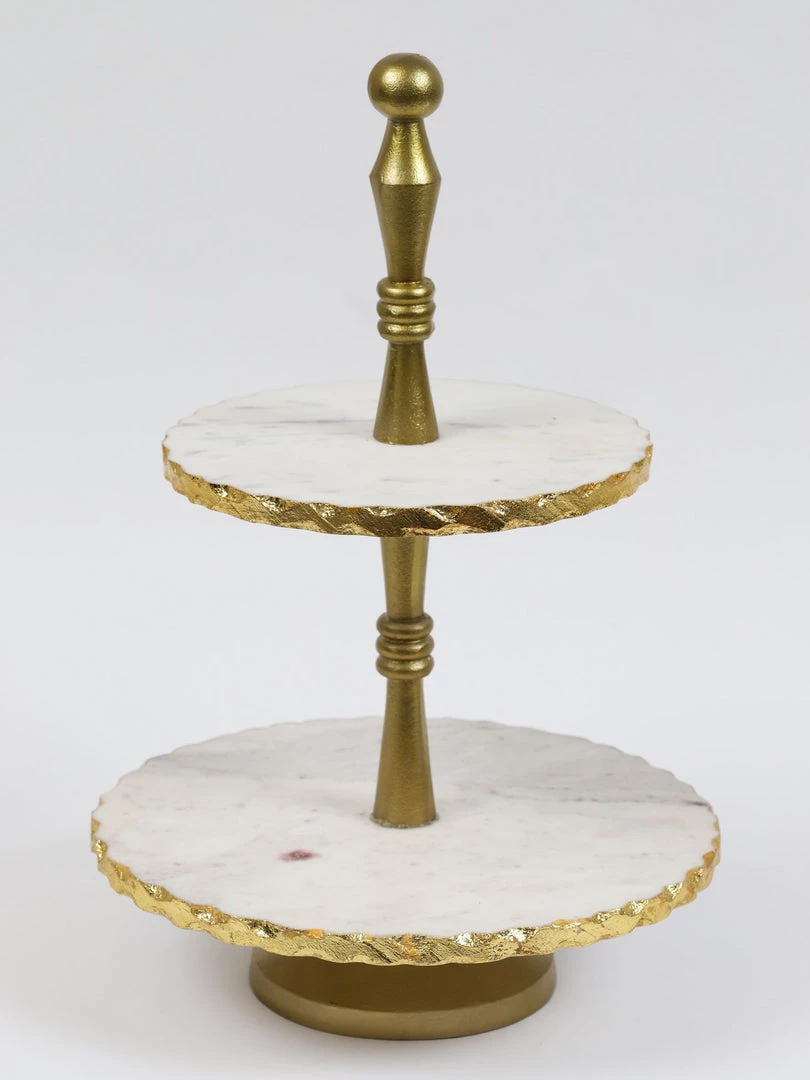 Description: This stunning two-tiered marble stand is great for your serving display! Perfect for displaying snacks or decor, this stand is stylish and capable of universal functions!