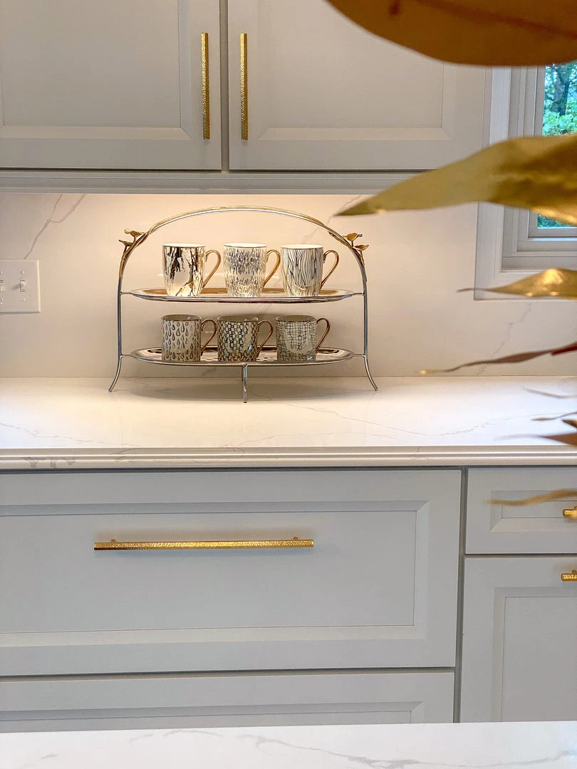 Description: This beautiful gold stand is perfect for your coffee station, or adding extra storage anywhere in your kitchen! The gold floral details add some much beauty and elegance to these design.