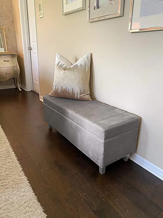 Bench. This luxurious velvet storage bench offers