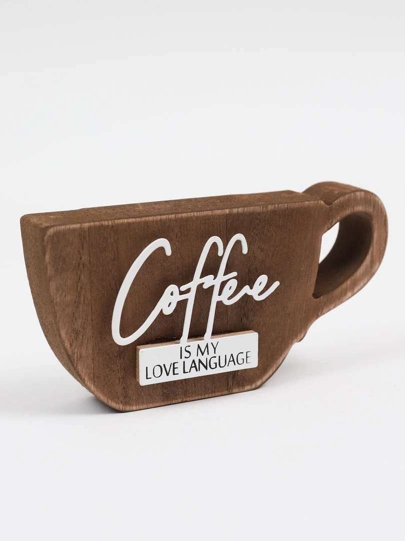 Description: These Small coffee mug signs are perfect for any coffee station or shelf! They come in three different styles: “Coffee is my Love Language”, “Coffee, The Other Vitamin C”, and “My Favorite Coworker is the Coffee Machine”. This is the perfect small gift too!