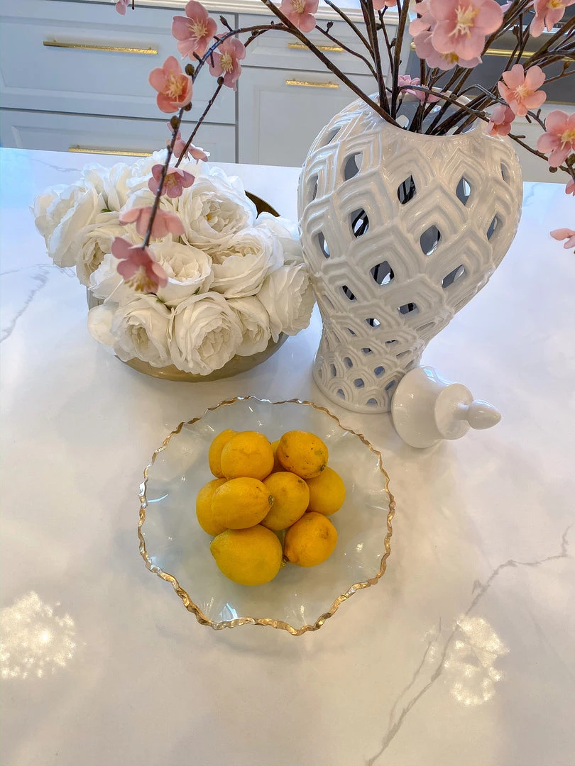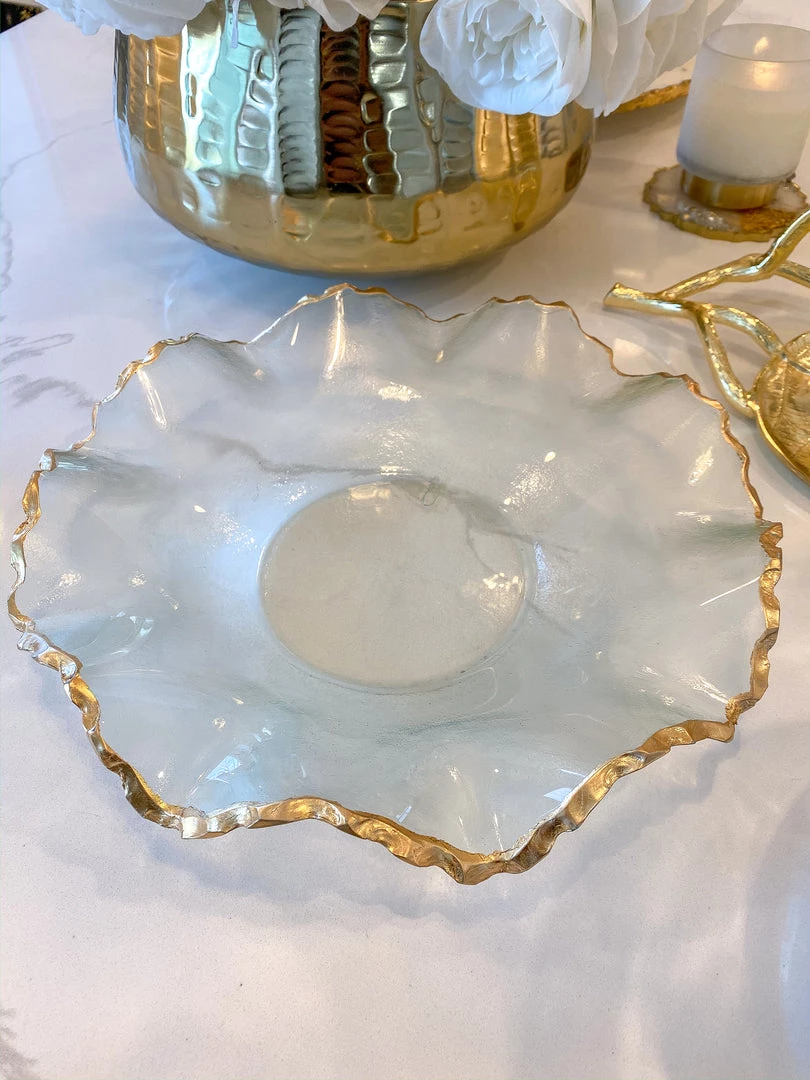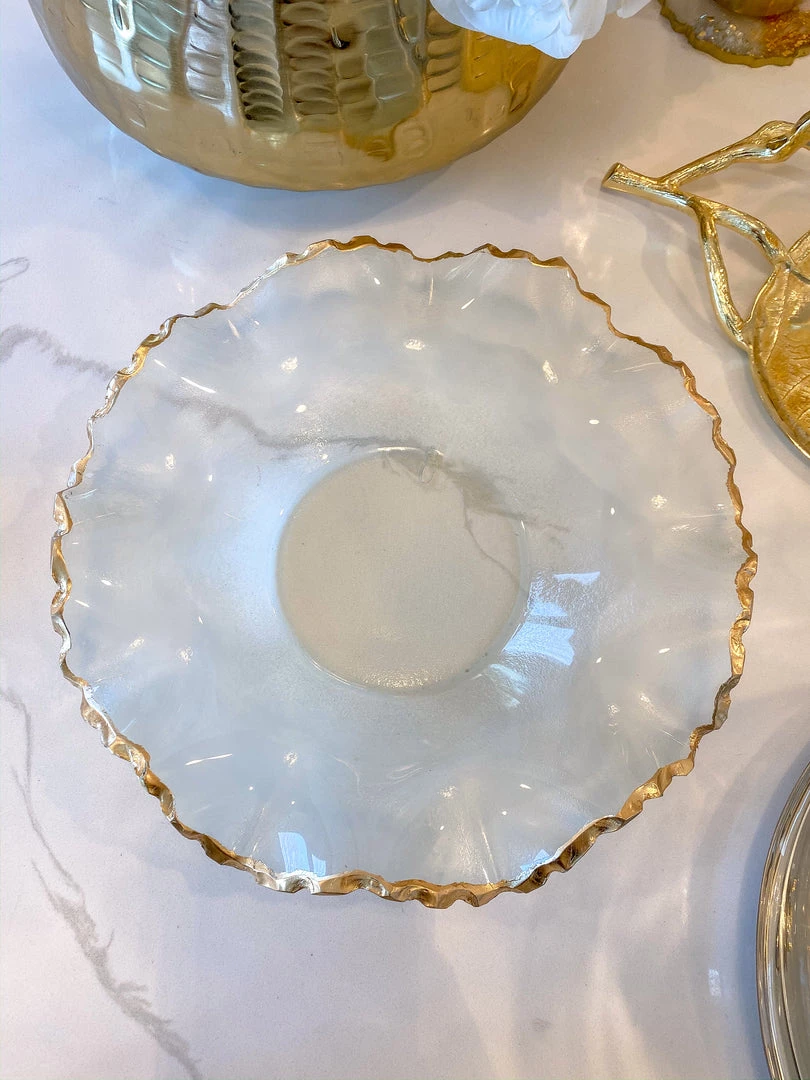 Description: This beautiful wavy edged bowl is a must have piece! Simple and elegant, it will make a great addition to your home decor!