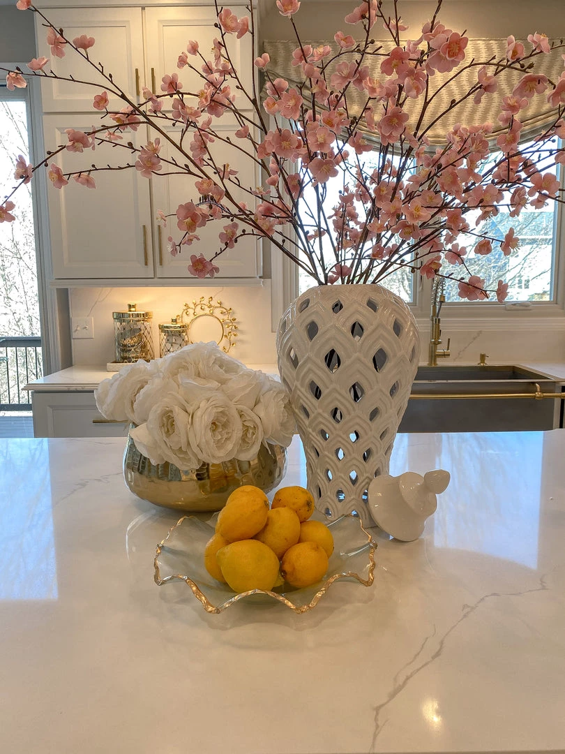 Inspire Me! Home Decor Rectangular Marble Tray With Cherry Blossom Details