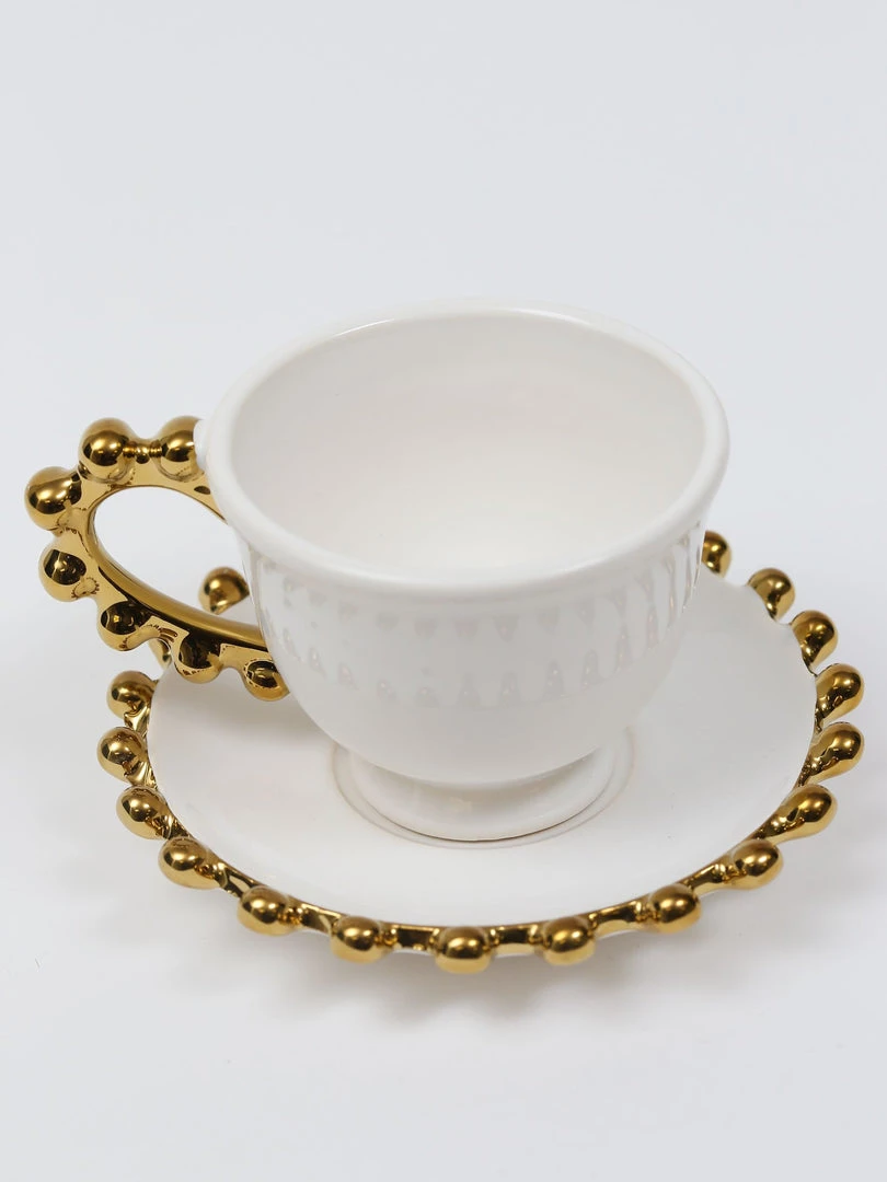 Description: This gold and white Espresso set with its gold beaded trim is absolutely stunning.
