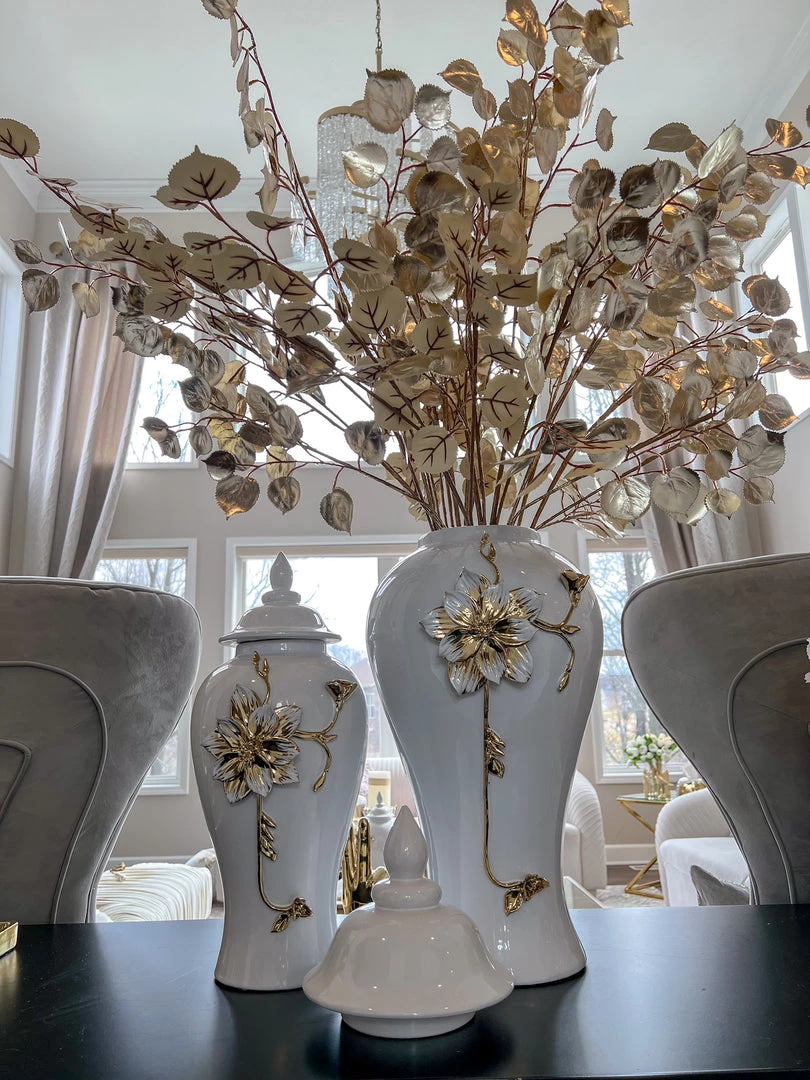 Description: These ginger jars are so intricate and STUNNING. The detailed gold and white flower design on the jar is so delicate and beautiful.