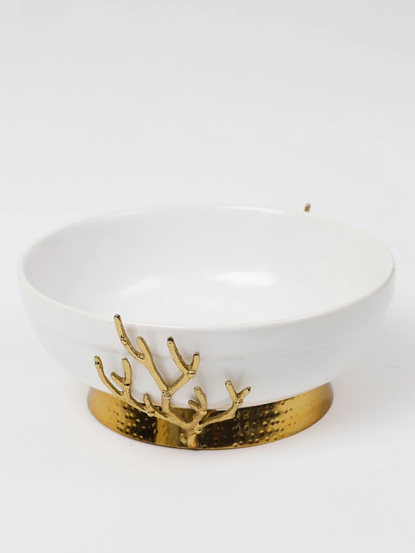 Description: This beautiful bowl is a great piece of elegant design. The gold textured details complement the glossy white ceramic to create a timeless look of sheer elegance and glam.