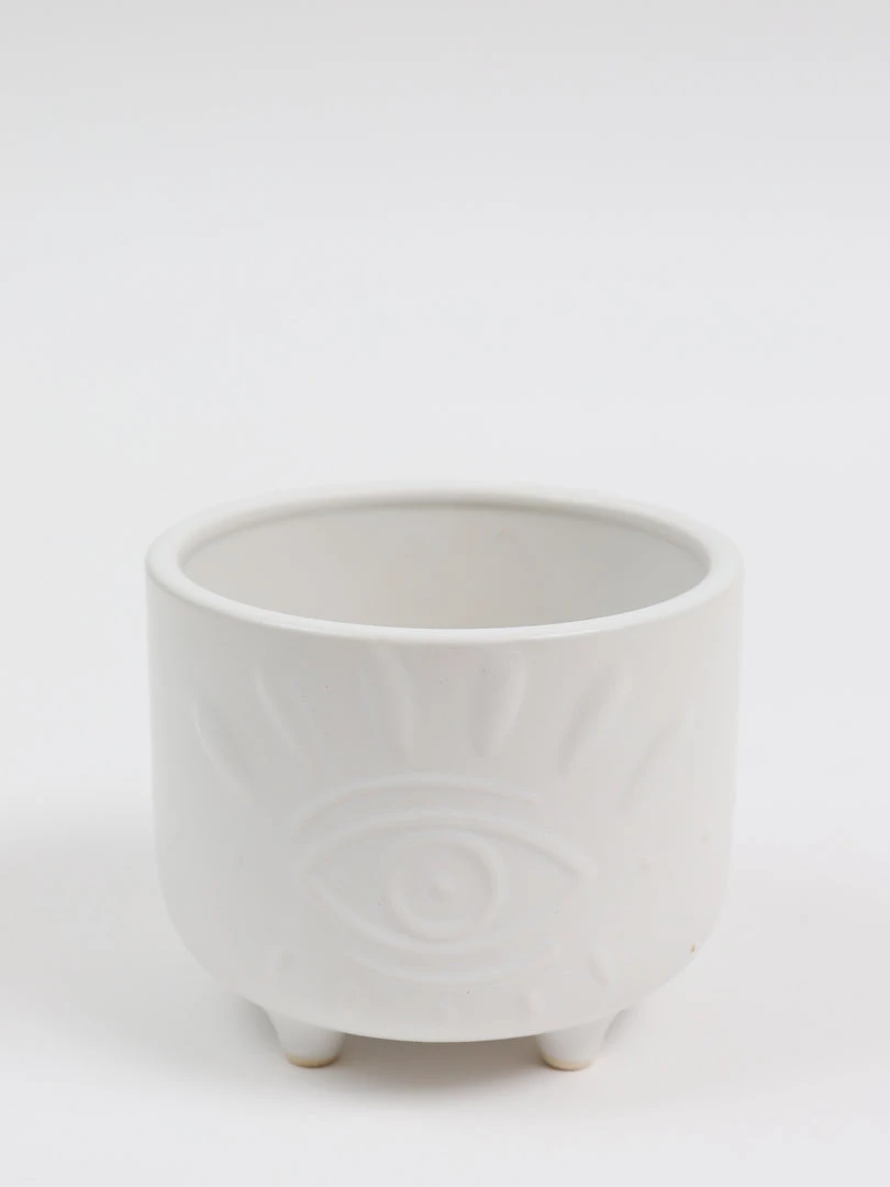 Description: These white planters feature the evil eye and come in 2 sizes!
