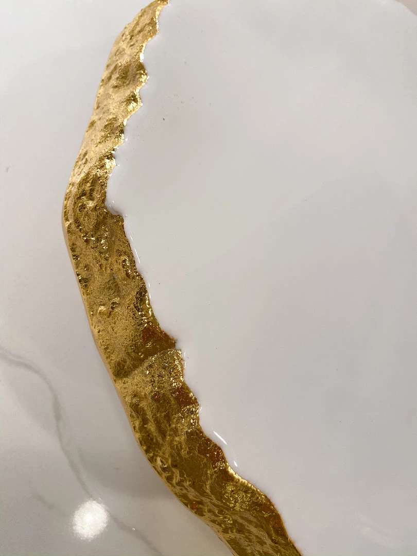 Inspire Me! Home Decor White Enameled Cake Stand With Metallic Edge (2 Colors) KITCHEN