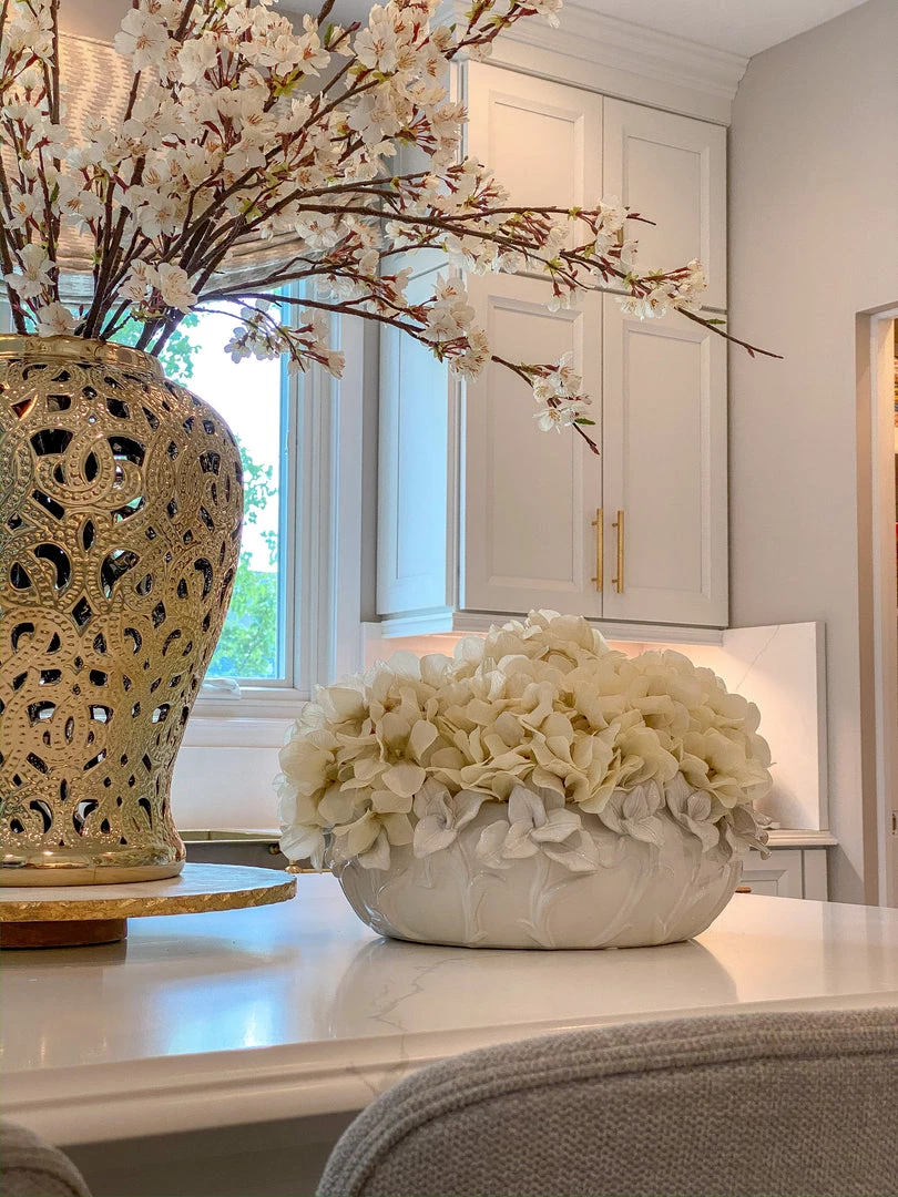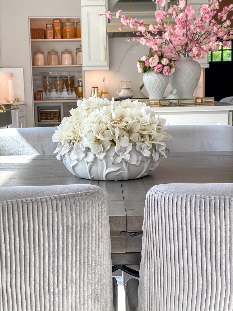 Descriptions: This beautiful ceramic floral vase would make a stunning display for your favoritie fruits or florals! We love the beautiful details in each flower.