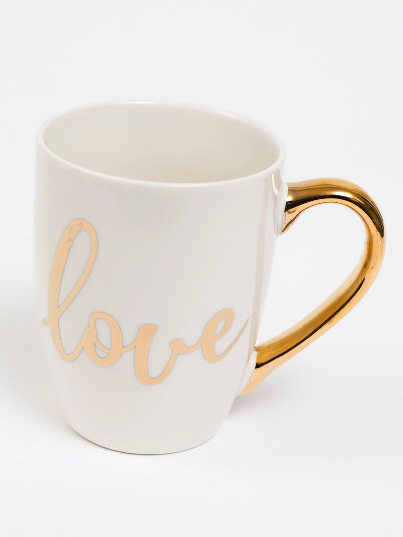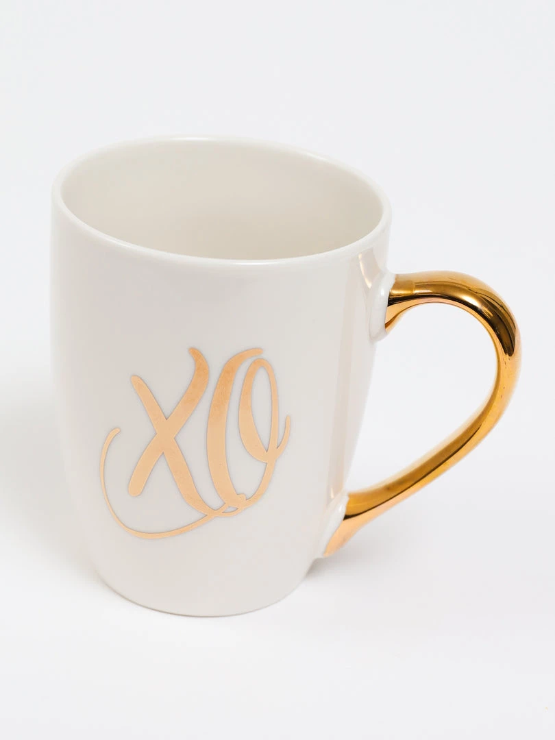 Description: This is a gorgeous white mug with metallic gold handles and will become your favorite addition to your coffee station.