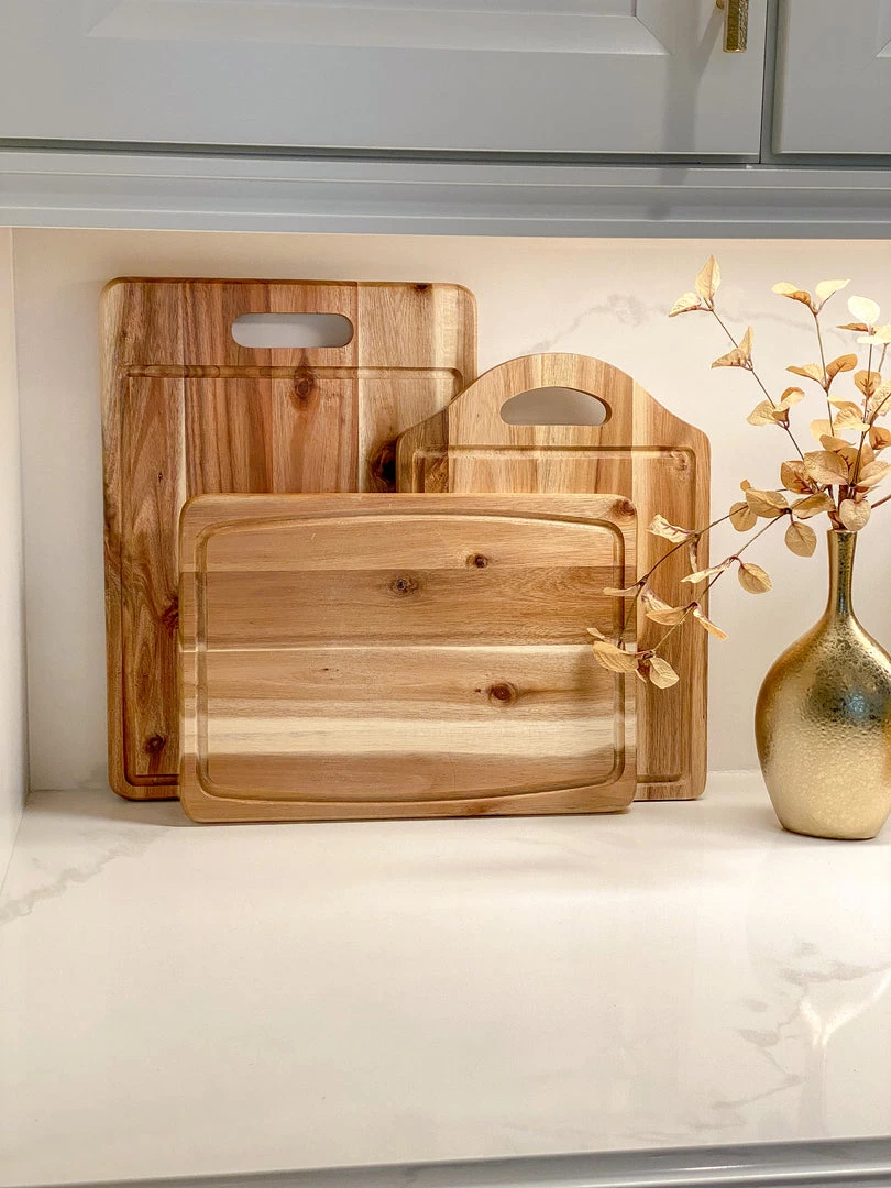 Description: This simple cutting board is sophisticated and functional! The slotted groove helps catch any liquid before they reach your counter!